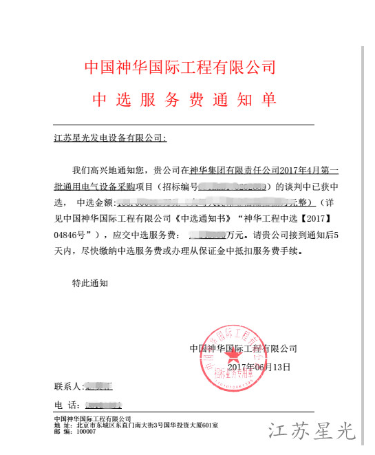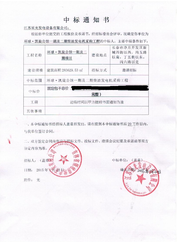 熱烈祝賀星光公司成功中標(biāo)中國(guó)解放軍某部隊(duì)后勤保障部500kw柴油發(fā)..