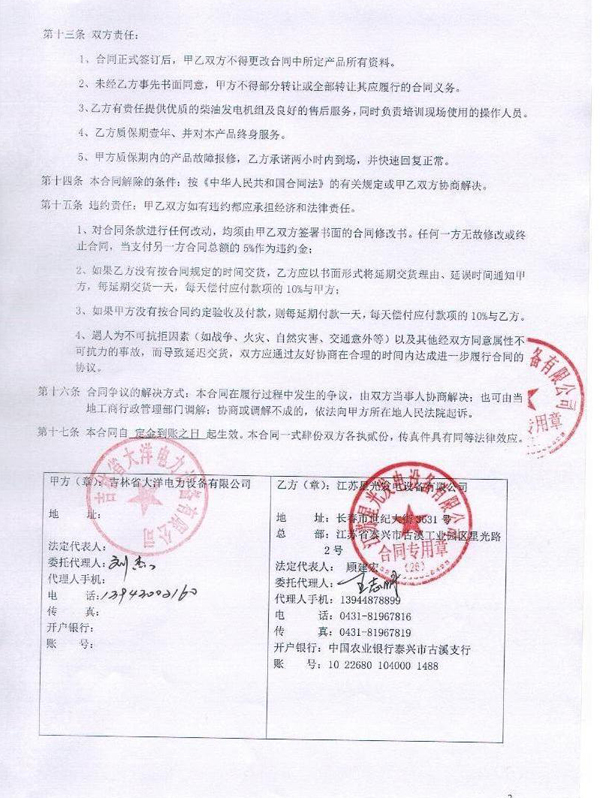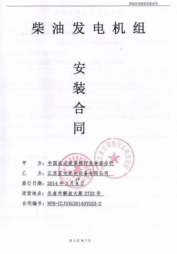 中國(guó)農(nóng)業(yè)發(fā)展銀行吉林省分行柴油發(fā)電機(jī)組安裝合同