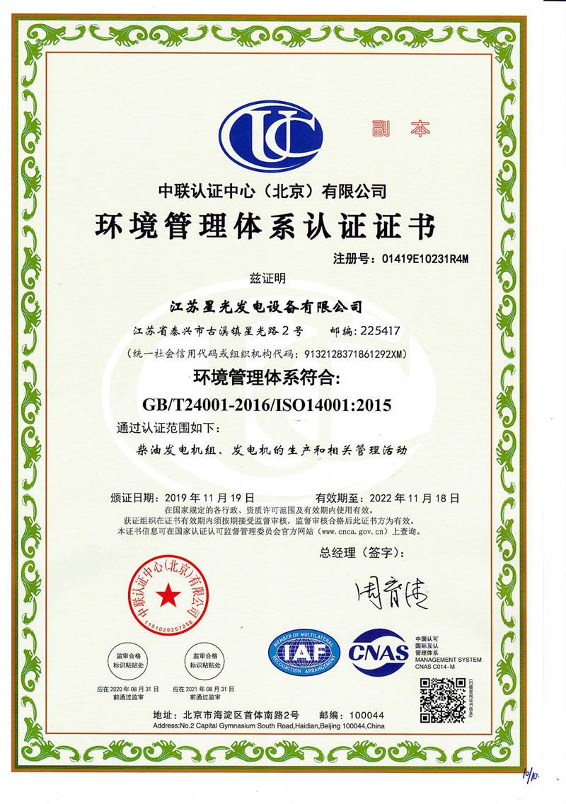 環(huán)境管理體系認(rèn)證證書(shū)